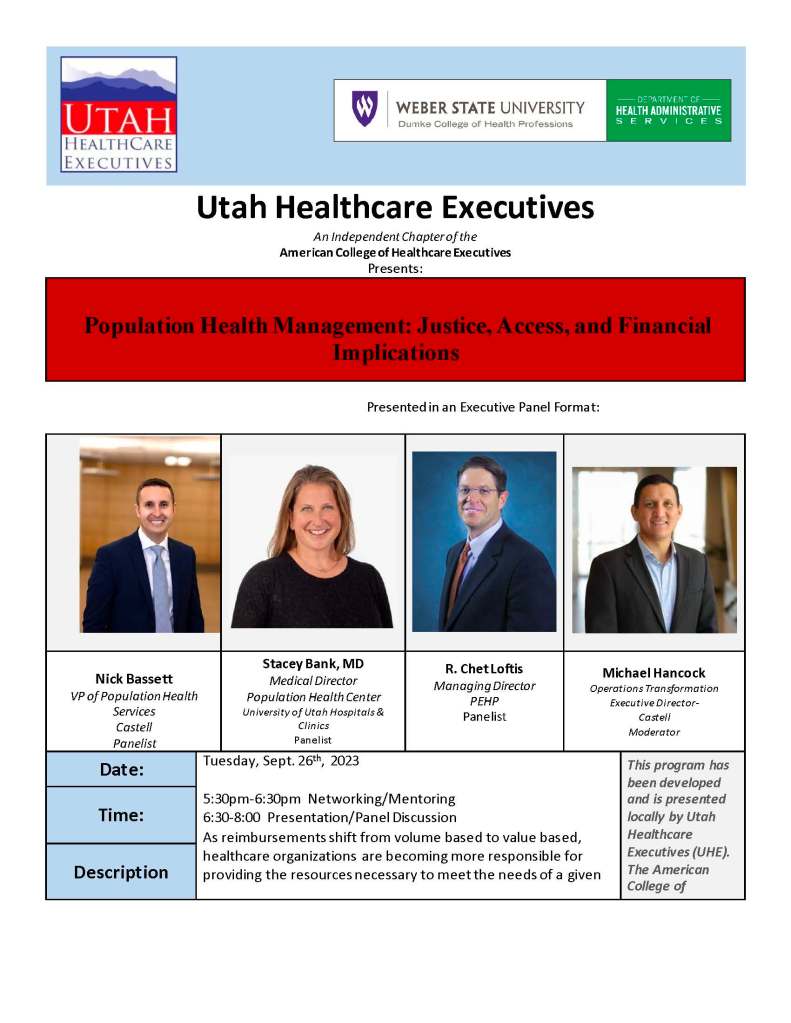 Utah Healthcare Executives (UHE), in collaboration with The American College of Healthcare Executives (ACHE), is organizing a comprehensive program to address this shift, focusing on the overarching theme of population health.