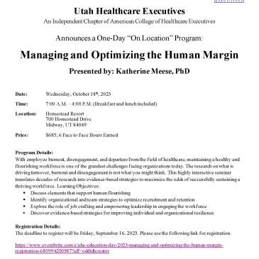 Utah Healthcare Executives (UHE), in collaboration with The American College of Healthcare Executives (ACHE), is organizing a comprehensive program to address this shift, focusing on the overarching theme of population health.